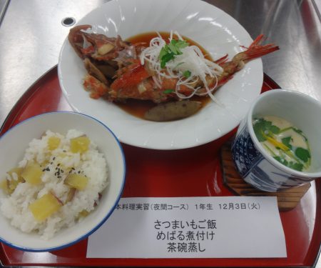 さつまいもご飯 めばるの煮付け 茶碗蒸し