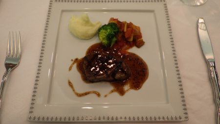 始めに着席の仕方やナプキンの使い方を教えていただき、慣れない会場の雰囲気と