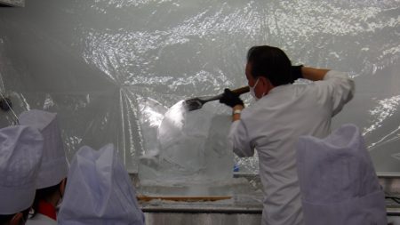 先日、ホテル一畑総料理長 兒玉和義先生に氷彫刻の特別授業をして頂きました!!