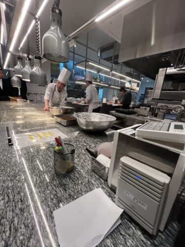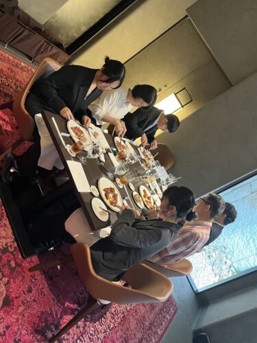 最後のデザートは普段はキッチンの中で調理されるそうですが、、学生のためにと
