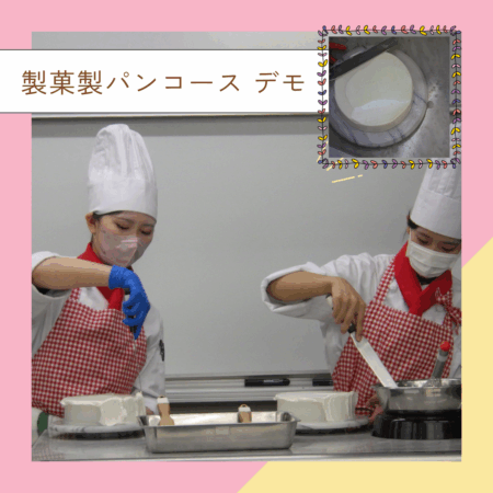 製菓は実習時間が多く、いろんな種類のパンやお菓子を実習で学ぶことができます。