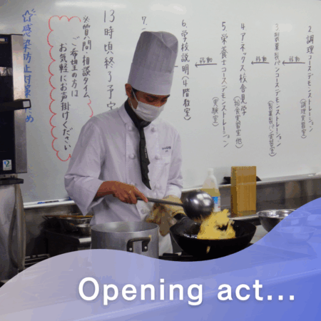 開始時刻より調理コースのデモンストレーションからスタート!