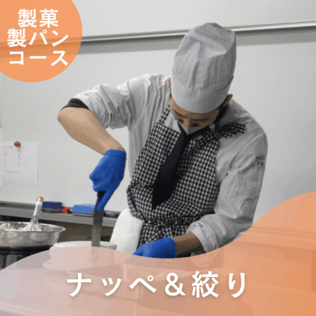 続いては、製菓製パンコースのデモンストレーションで『ナッペ&絞り』を披露☆