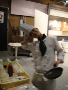 実際にスタジオでオムレツを作るということで・・・本番前には何度も練習!いつもと違い、IHでの調理ということで、少し苦戦しました。