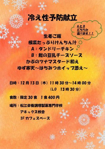 《主菜が選べる♪冷え性予防献立》