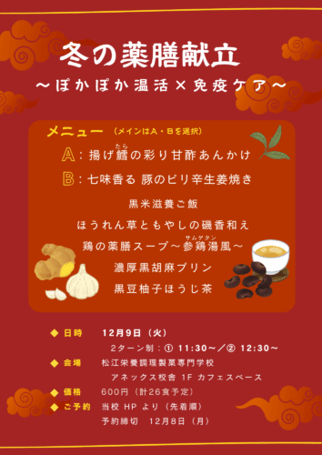 《冬の薬膳献立~ぽかぽか温活×免疫ケア~》